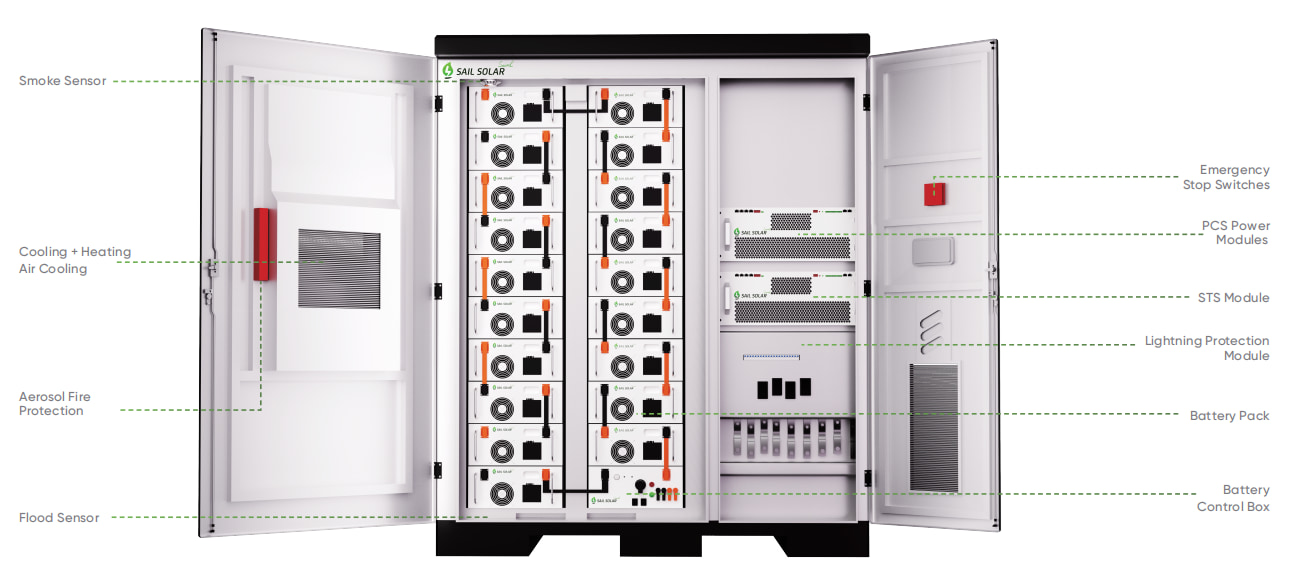 All-in-oneNotre armoire de stockage d'énergie extérieure de pointe offre une puissance de 105 kW associée à une capacité de stockage de 215 kWh, ainsi qu'un onduleur robuste de 125 kW couplé à des options de stockage évolutives de 233 kWh ou 261 kWh. Elle représente un changement de paradigme dans la gestion de l'énergie pour les secteurs commercial et industriel.