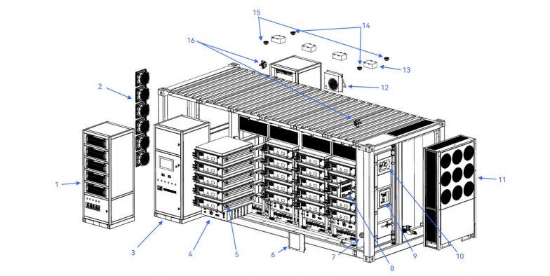 Le conteneur de stockage d'énergie à refroidissement liquide extérieur, équipé d'un conteneur extérieur intégré, comprend les principaux composants suivants :