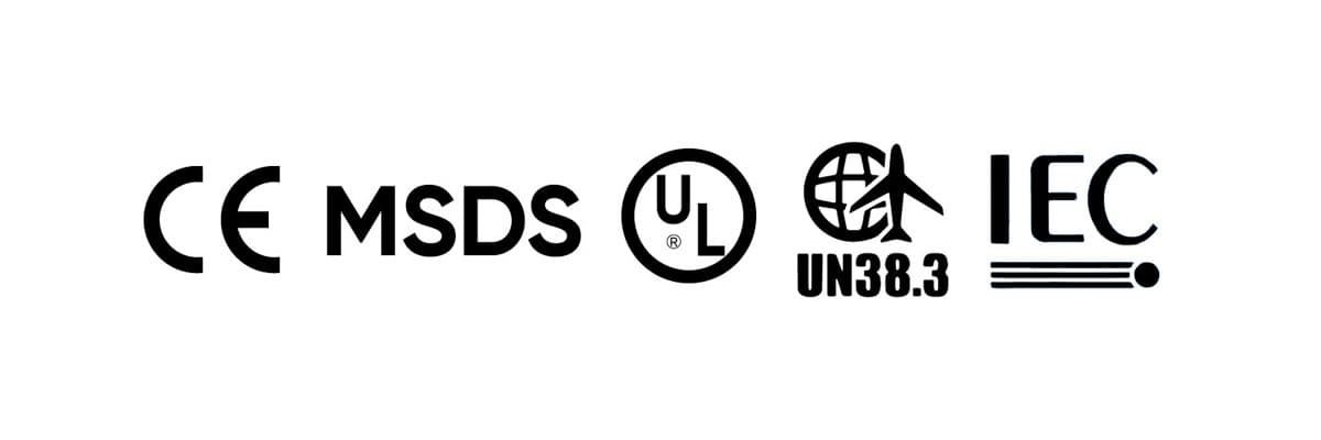 | Certificats cellulaires | UN38.3, FDS, IEC62619, CE, UL1973 | ||