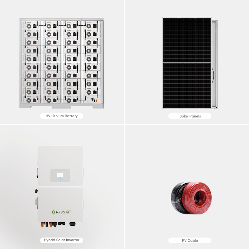 SAS80KW-HYLe système solaire hybride Sail Solar de 80 kW est équipé d'une batterie lithium haute tension de 80 à 100 kWh. Ce système hybride, à la fois intelligent et fonctionnel, combine les avantages d'un système raccordé au réseau et d'un système autonome. Il est idéal pour les zones non desservies par le réseau électrique, où l'alimentation est instable ou le prix de l'électricité élevé. Ce système peut être décrit comme un système autonome avec alimentation de secours ou comme un système raccordé au réseau avec stockage d'énergie supplémentaire par batterie.