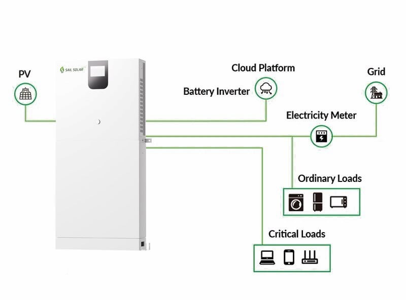 Système de stockage d'énergie tout-en-un Sail Solar ESS 5 kW avec onduleur et batterie au lithium 5 kWh