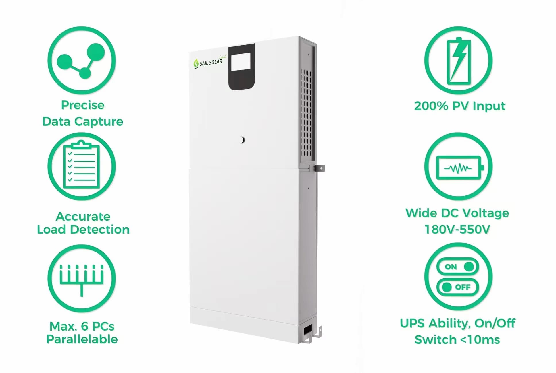 Le système de stockage d'énergie tout-en-un de 5,12 à 20,48 kWh de SAIL Solar est une solution intégrée et avancée qui combine un onduleur solaire hybride monophasé avec une batterie au lithium basse tension haute performance, ce qui en fait un choix idéal pour une utilisation résidentielle.