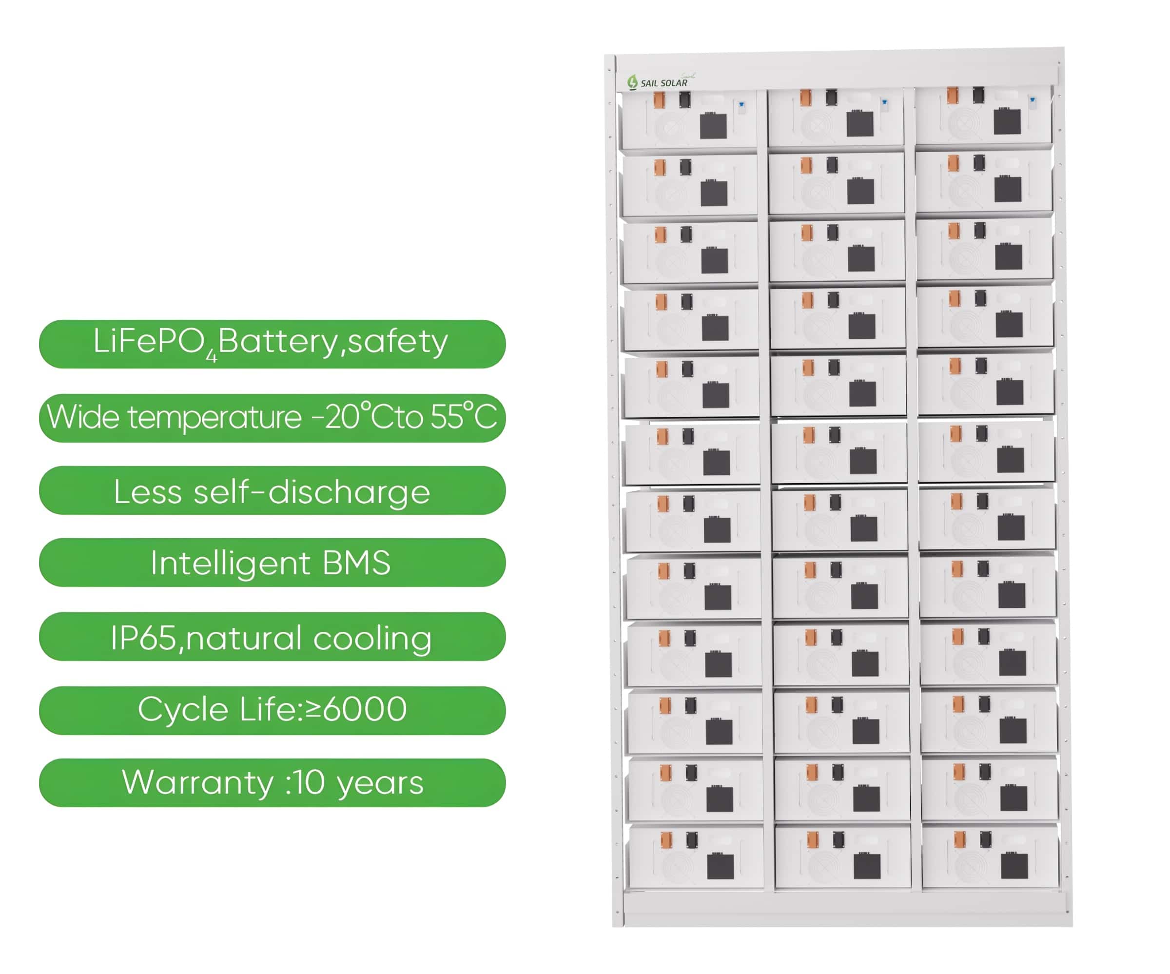 Prix des batteries Sail Solar 200 kWh, coûts de stockage d'énergie par batterie pour le secteur commercial, conception personnalisée en fonction de la demande en électricité.