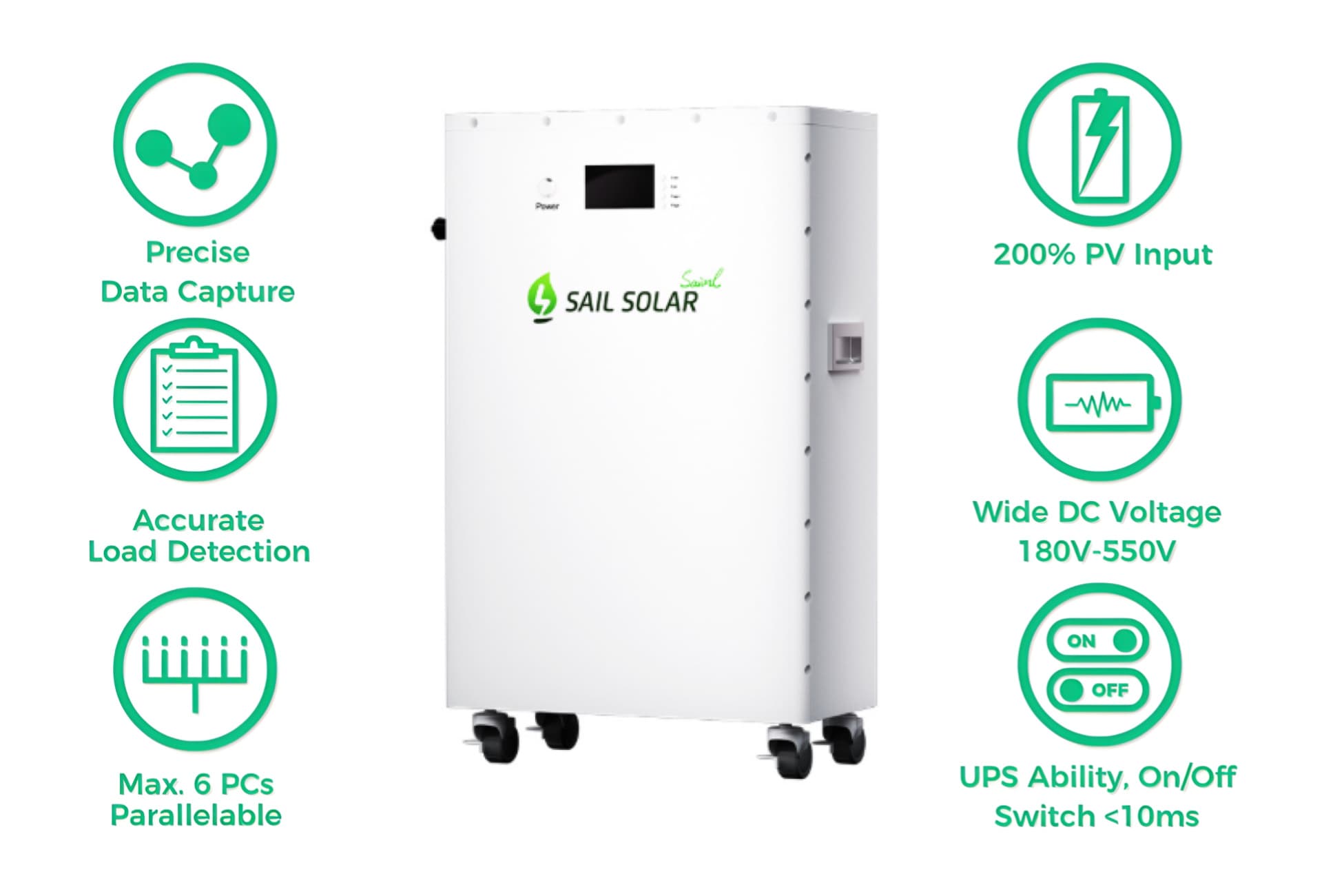 La batterie mobile au lithium Sail Solar de 15 kWh est la solution idéale pour ceux qui recherchent une option de stockage d'énergie performante et évolutive, offrant à la fois commodité et fiabilité.